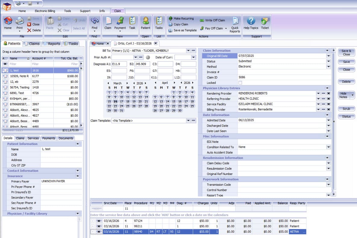 EZClaim electronic claim submission screenshot